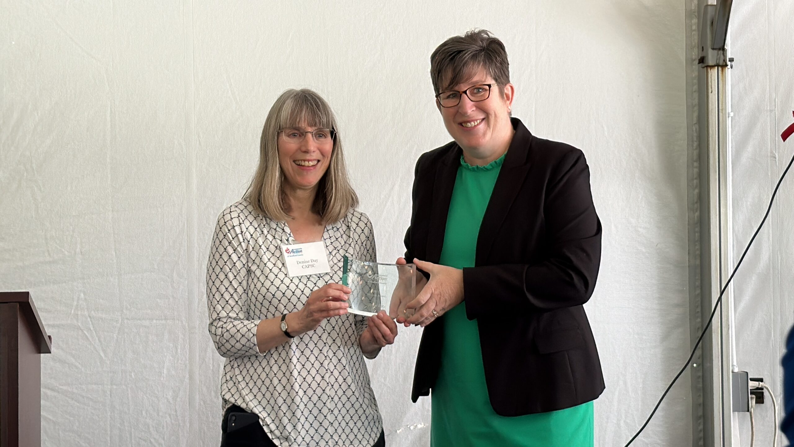 Community Action Partnership of Strafford County (CAPSC) honored a valuable community partner and one of our most dedicated employees during our 57th Annual Meeting on May 17 at Flag Hill Distillery and Winery in Lee.