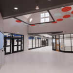 Under the proposed design, the first floor will include the library, cafeteria, gymnasium, rooms dedicated to music and art, and special education class space. Classrooms will include natural lighting and materials, flexible space, and state-of-the-art technology.