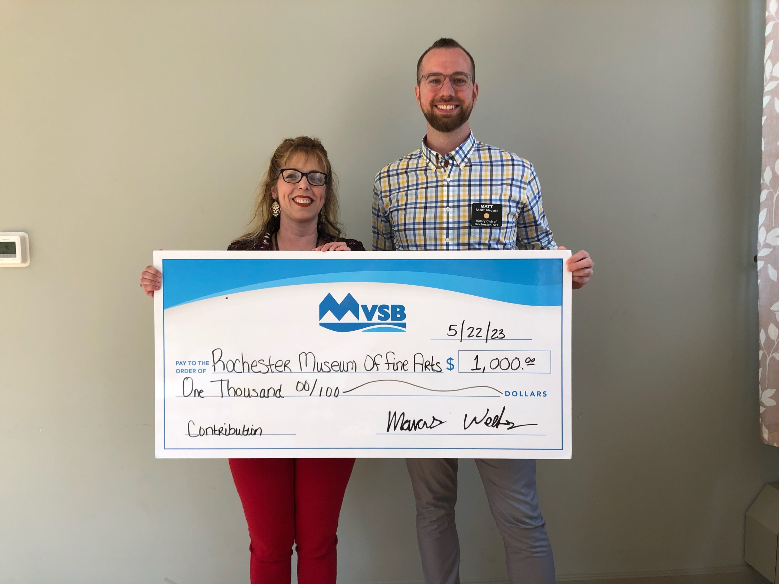 For the second year, MVSB generously contributed $1,000 in order to support the museum’s efforts to create public art installations, host temporary art exhibits in the James W. Foley Memorial Community Center and Rochester Public Library, and expand its permanent collection and digital offerings.