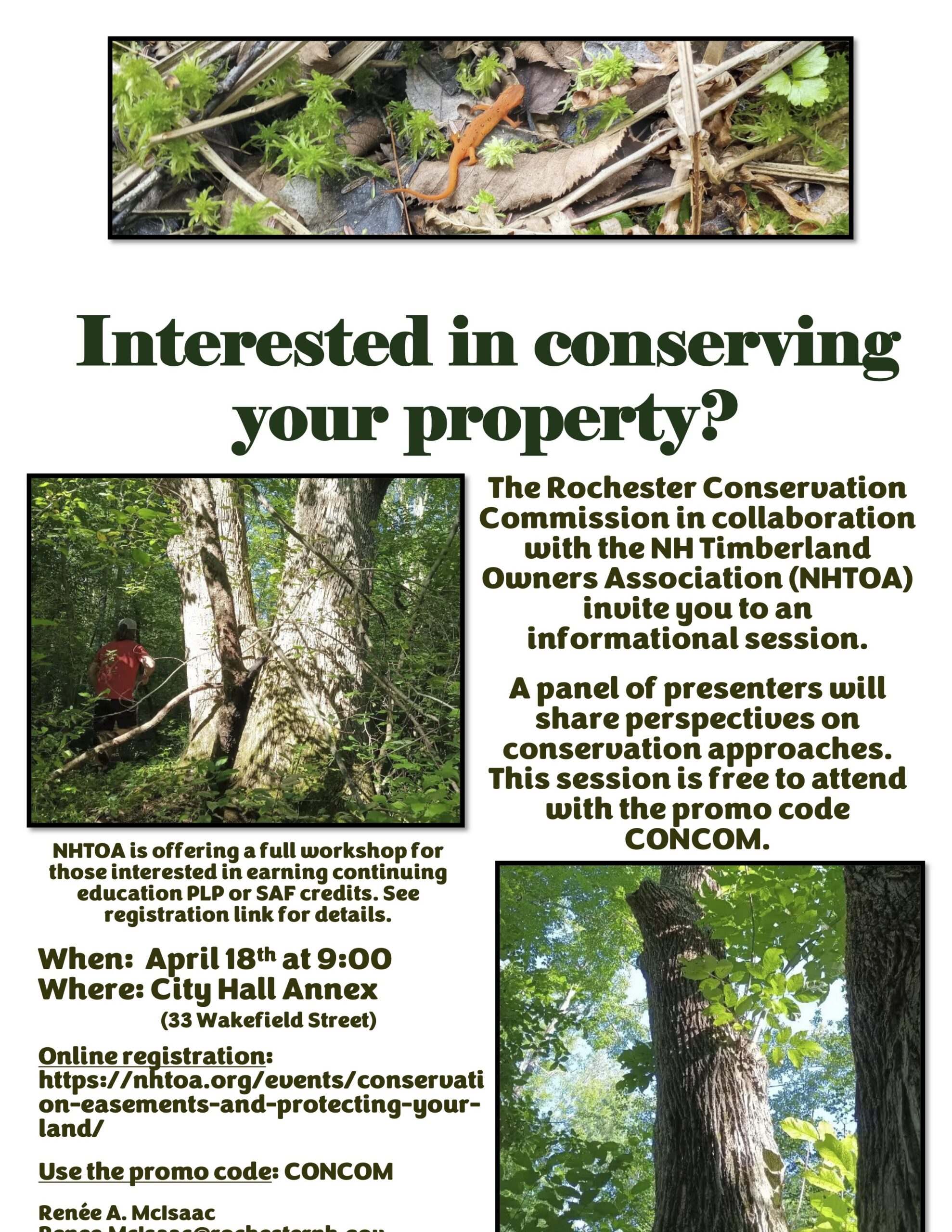 The Rochester Conservation Commission, in collaboration with the NH Timberland Owners Association (NHTOA), invites you to an informational session.