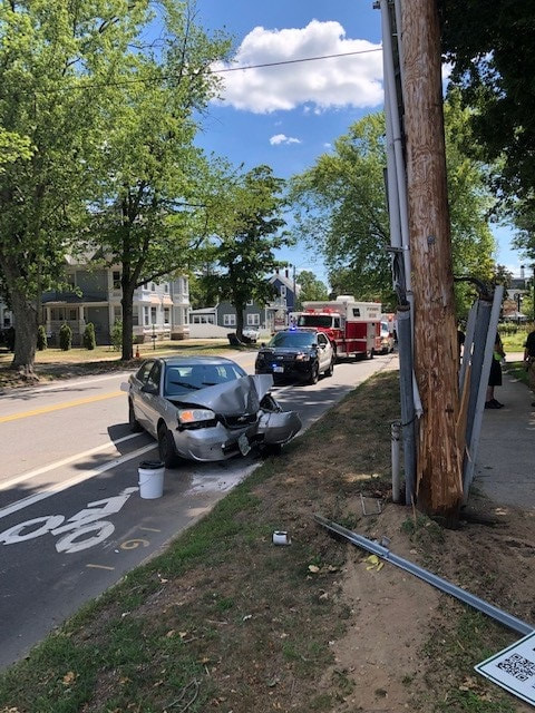 On August 12, 2020 at about 1:13pm, Rochester Police, Rochester Fire, and Frisbie EMS responded to the area of 84 Wakefield Street for a reported single motor vehicle into a pole.